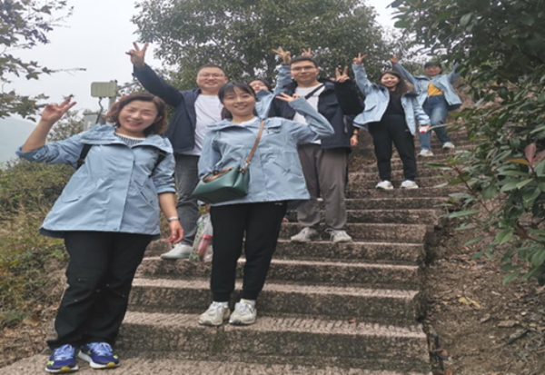 天公作美,晴空萬(wàn)里。此次團(tuán)建活動(dòng)分為登山比賽和拓展活動(dòng)兩個(gè)環(huán)節(jié)。為加強(qiáng)相互了解,營(yíng)造團(tuán)結(jié)友愛(ài)的的團(tuán)建氛圍,登山比賽前,雙方隊(duì)員在一片歡聲笑語(yǔ)中進(jìn)行了相互識(shí)別。隨著一陣戰(zhàn)鼓擂動(dòng),登山比賽開(kāi)始了,為了能率先登頂,大家爭(zhēng)先恐后,你追我趕,在大汗淋漓中感受到戰(zhàn)勝自我的樂(lè)趣,取得名次的隊(duì)員獲得了物質(zhì)獎(jiǎng)勵(lì)。