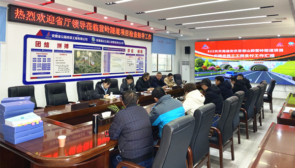 1月24日,安徽省商務廳人教處處長益輝率隊到營嶺隧道項目開展“根治欠薪冬季專項行動”督導檢查。安慶市監(jiān)察支隊、懷寧縣人社局、石鏡鄉(xiāng)政府及項目辦負責人陪同。