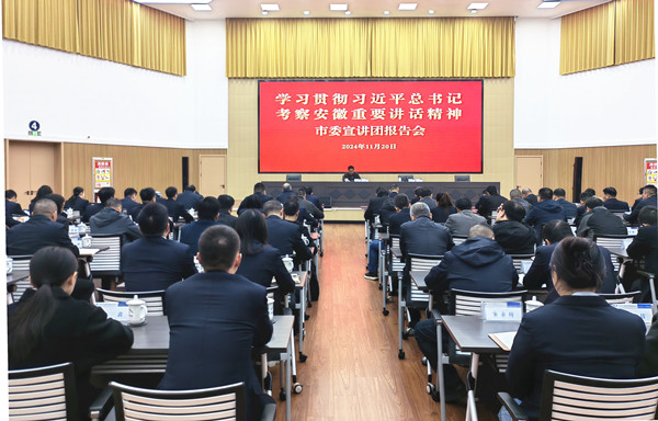 按照市委統(tǒng)一部署,11月20日上午,學(xué)習(xí)貫徹習(xí)近平總書記考察安徽重要講話精神市委宣講團(tuán)在市交控集團(tuán)宣講。市委宣講團(tuán)成員、市生態(tài)環(huán)境局黨組書記、局長唐琪虎作宣講報告。市交控集團(tuán)黨委委員、副總經(jīng)理彭凱主持報告會。