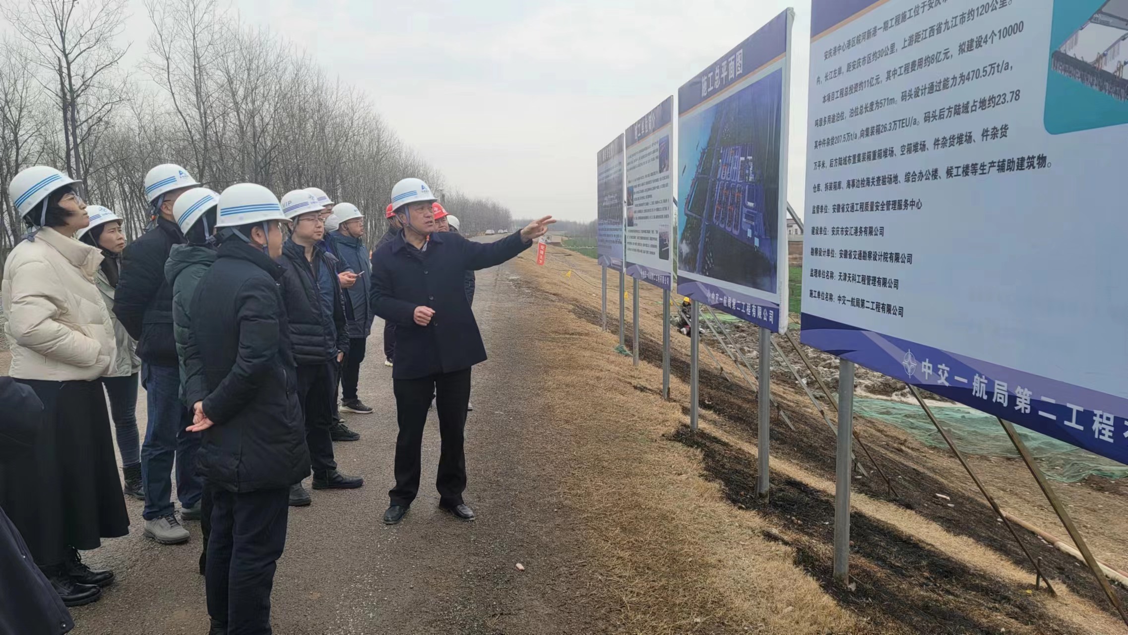 2月11日,國家發(fā)改委綜合運輸研究所經(jīng)濟中心主任樊樺一行赴安慶港中心港區(qū)皖河新港一期工程調(diào)研指導工作,安慶市發(fā)改委黨組成員、副主任王玨,安慶市安匯港務有限公司等參建單位負責人陪同調(diào)研。